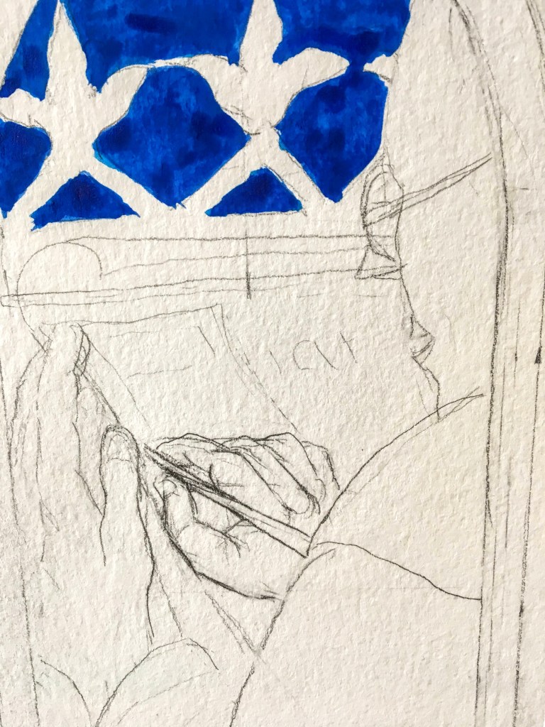 For this project I am painting with gouache, mixed with a little watercolor, all on watercolor paper.