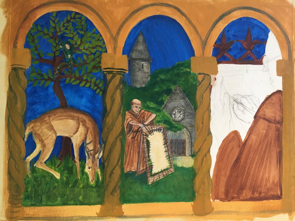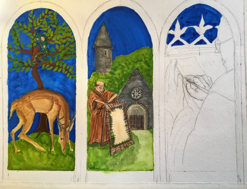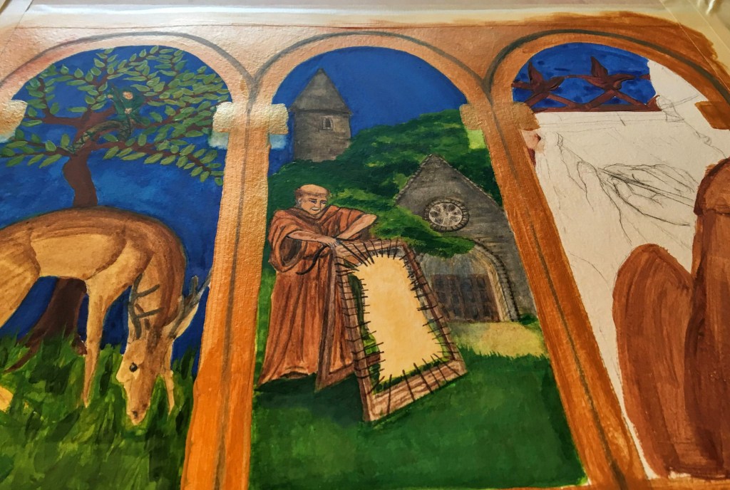 And on the afternoon when I had hoped to finish off the illuminating monk, I put some clumsy capitals there instead.