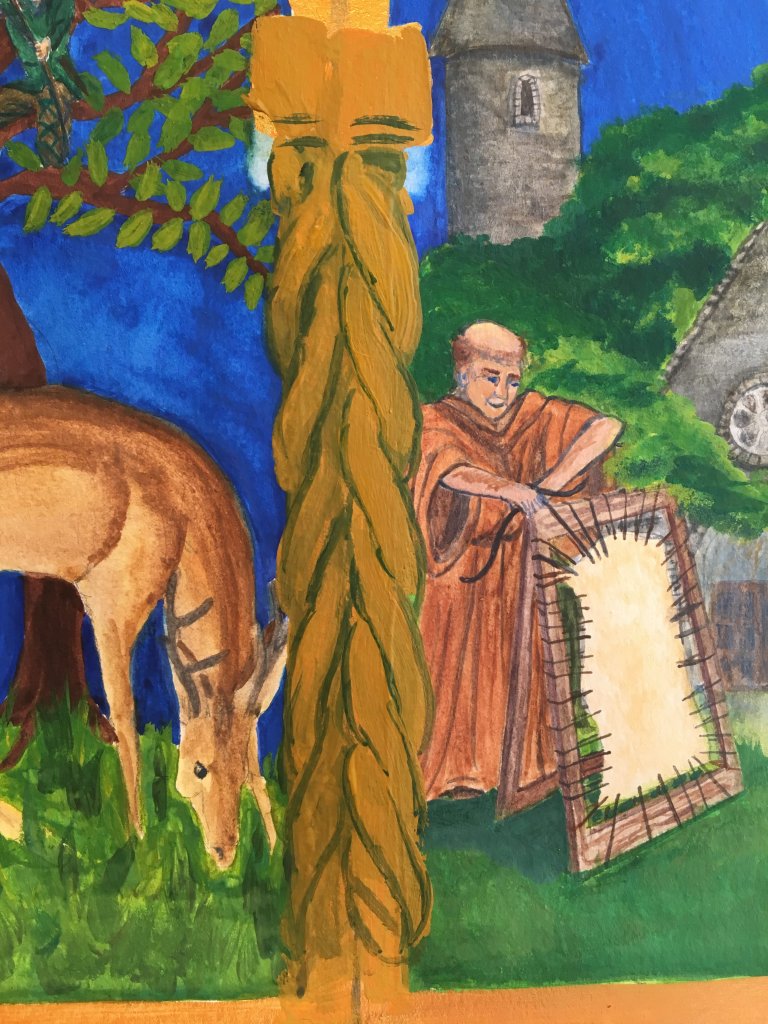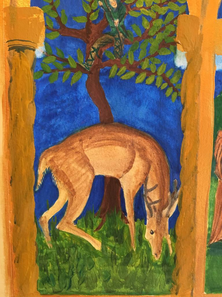 See the pillars on either side of the deer? That’s probably mess-up number 2. By the end of the day there would be about 5 or 6 layers of ‘discarded’ -painted over- pillars.
