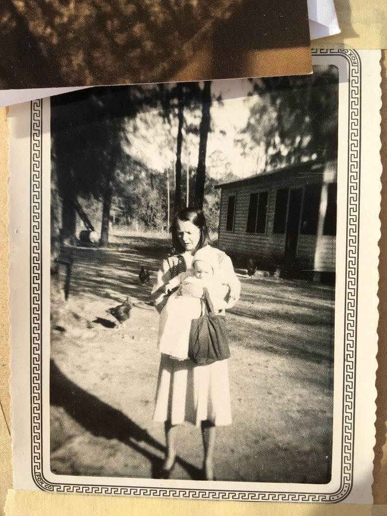 For this picture I decided to go with the one of Great-Grandma holding either Grandma or Unlce Pat outside their house in Georgia. Instead of the baby in the picture, I substituted the only childhood picture of Grandma -the cute baby holding the puppy.
