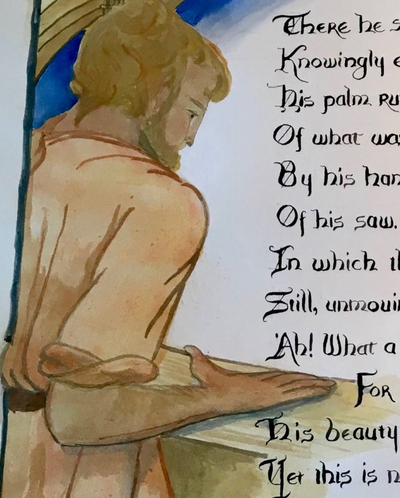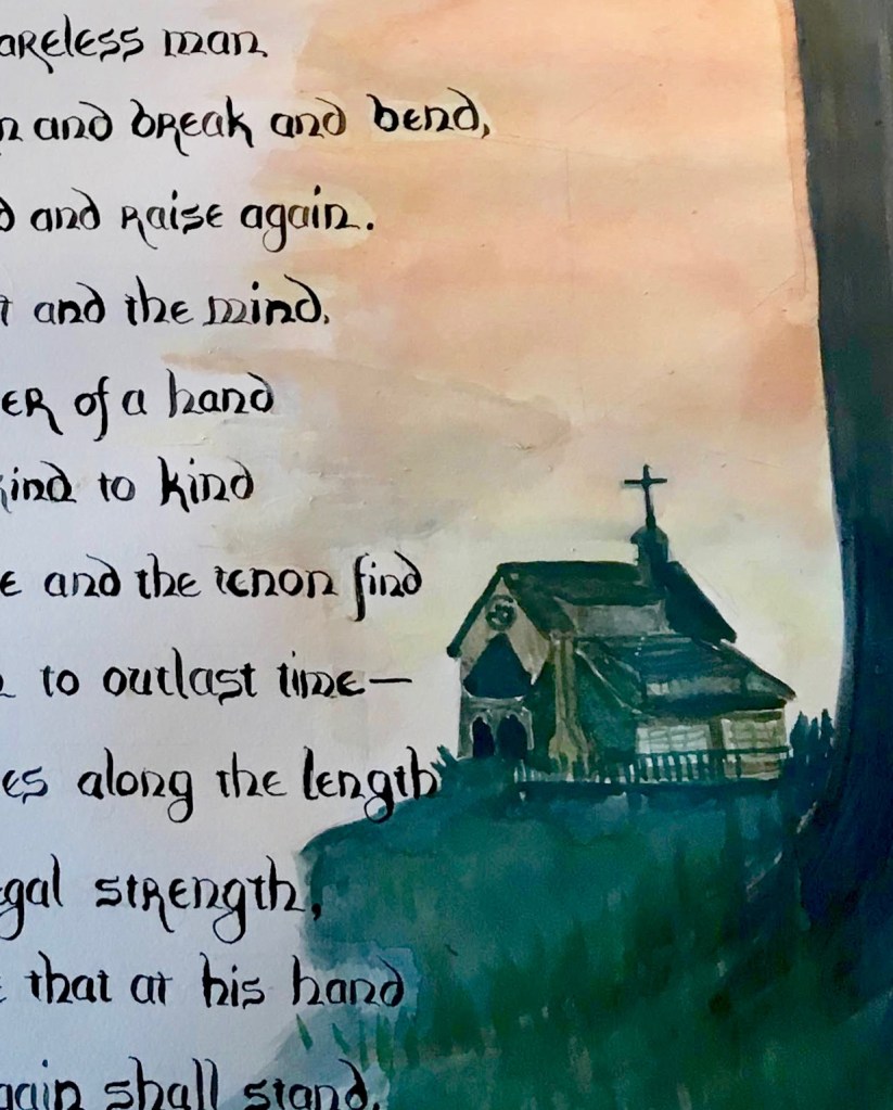 Not long after finishing this work, I was able to meet both the poet and timber framer. How proud I was to give the poet an illumination of his own work!