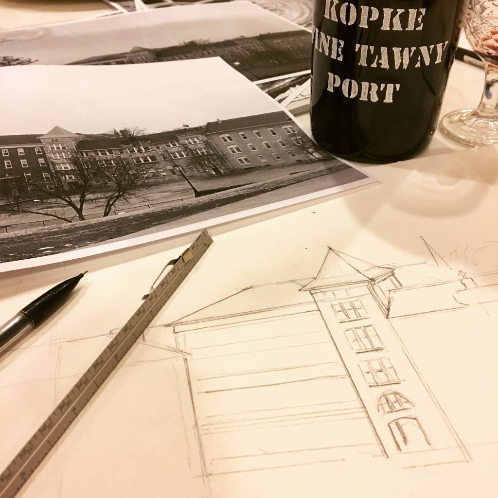 As I began to paint more for nature study class, and walked from upper campus to lower campus each day to work, I started to notice how beautiful the buildings were around me.