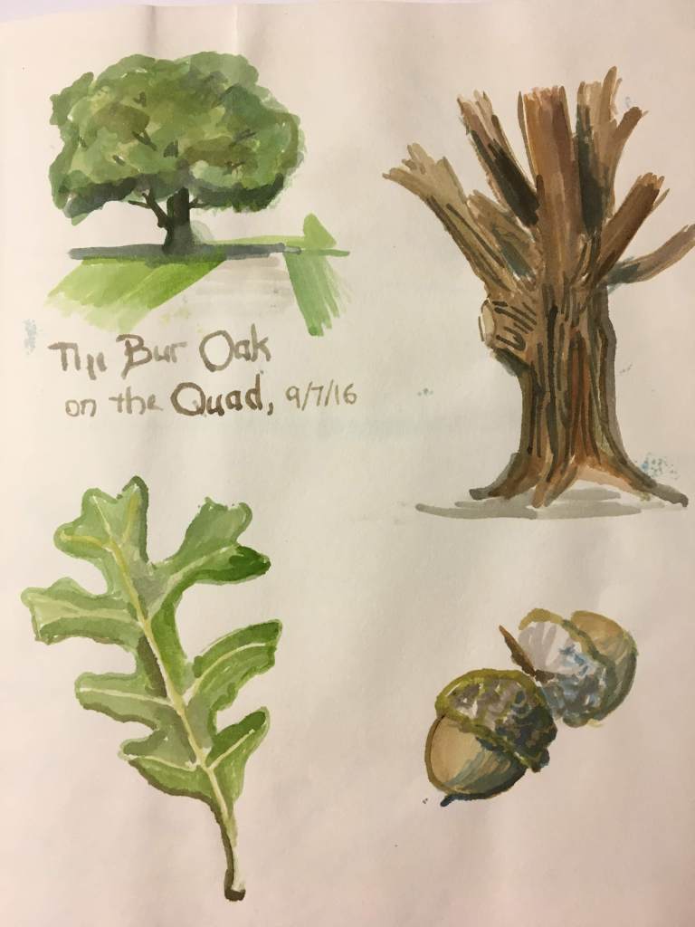 Back down on the more developed part of campus, there is the most beautiful, strong, burr oak. He stands like a quiet sentinel overlooking the Quad.