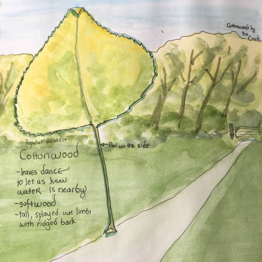 Here is a study of a cottonwood leaf in the foreground; in the background is a little road leading over the last (and very old) bridge over College Creek, mentioned in Fr. Francis Finn’s, Tom Playfair Series.