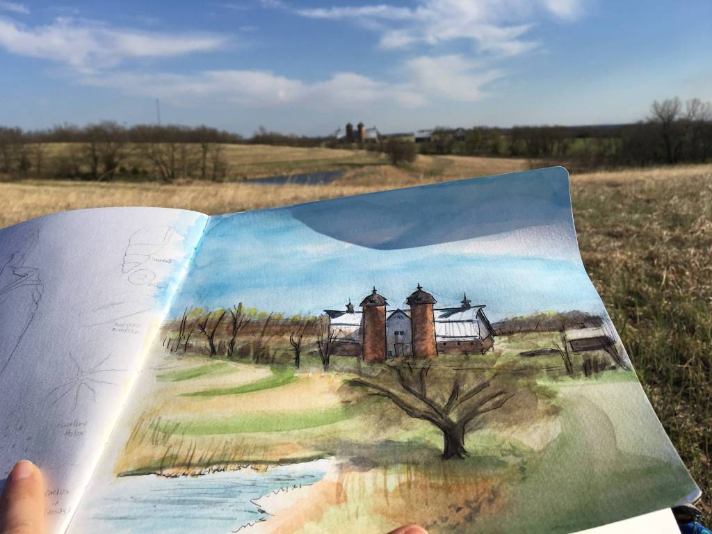 I did the painting in a sketchbook, not on a piece of paper. That means for me that it was just for fun, to practice, and capture a piece of beauty while spending time outside with a friend.