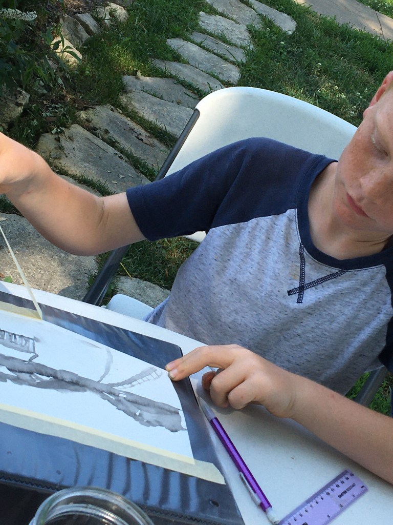 It’s gotten pretty intense with drawing fundamentals, like perspective and then more pressure came with watercolor 101. But it was also what the kids were looking forward to the most: Beginning to paint!