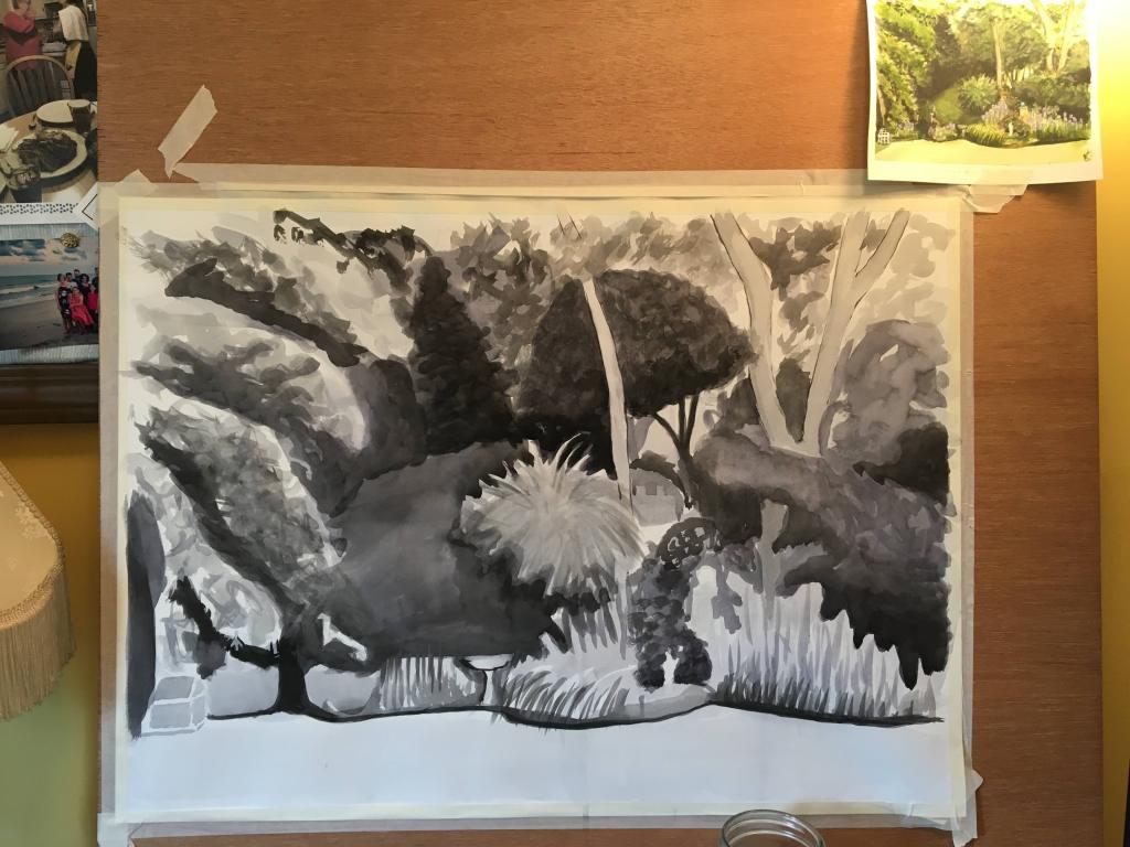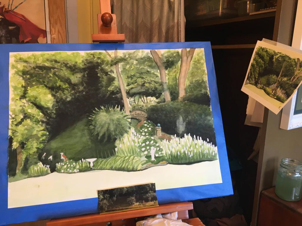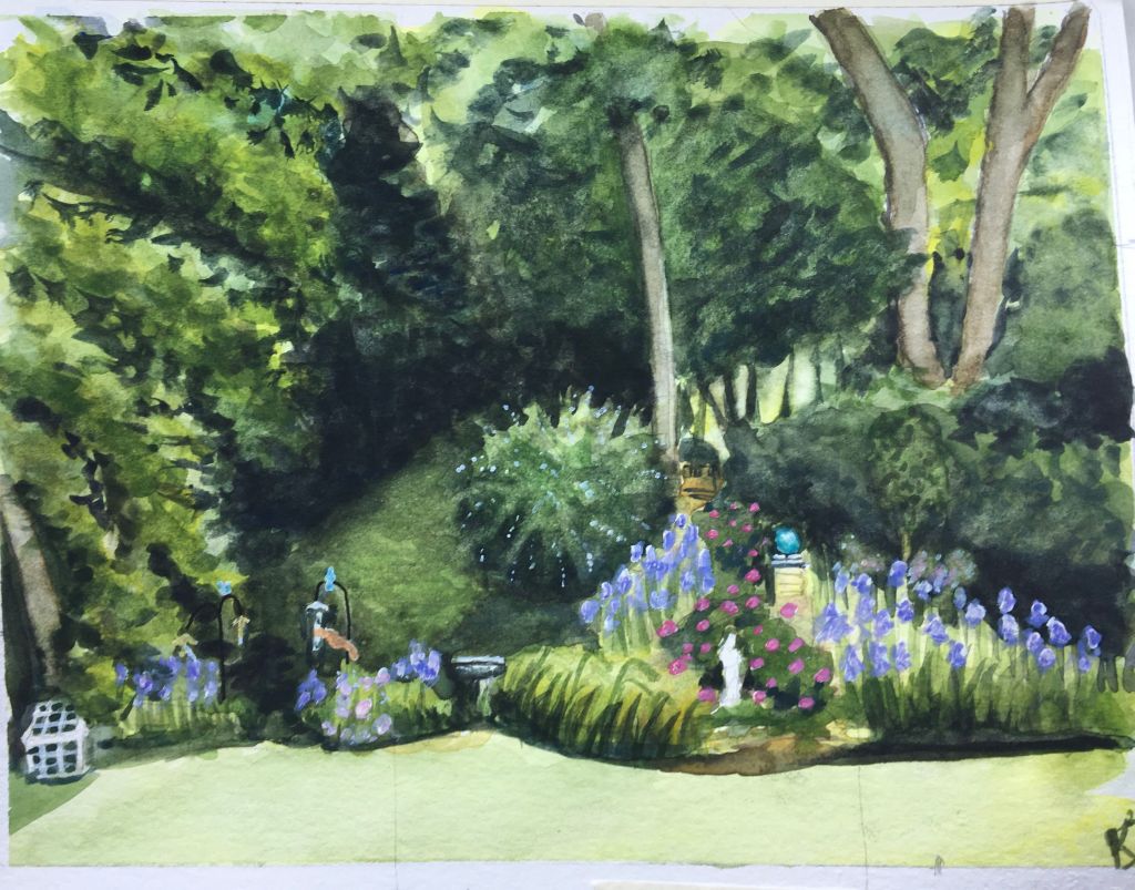 Last May I received a commission to paint the treasured scene of a dear family’s backyard.