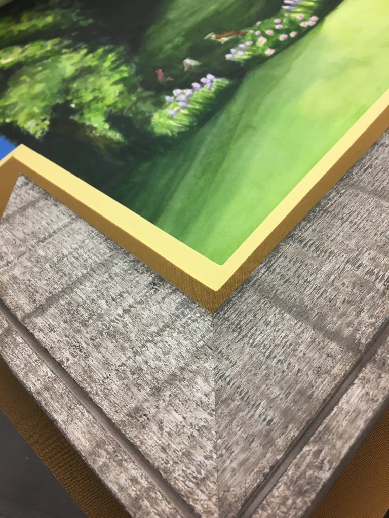 After my wonderful clients selected the framing and on where it was going to be hung, the painting was dropped of for digitization and the final framing touch.