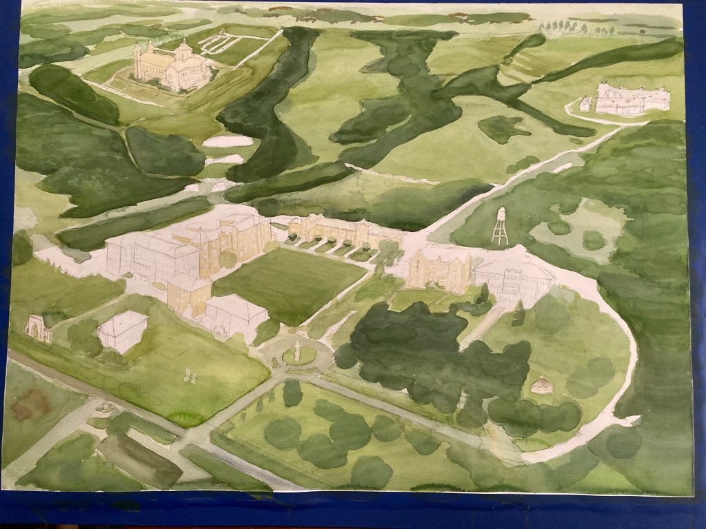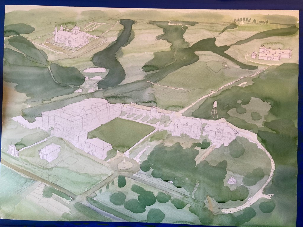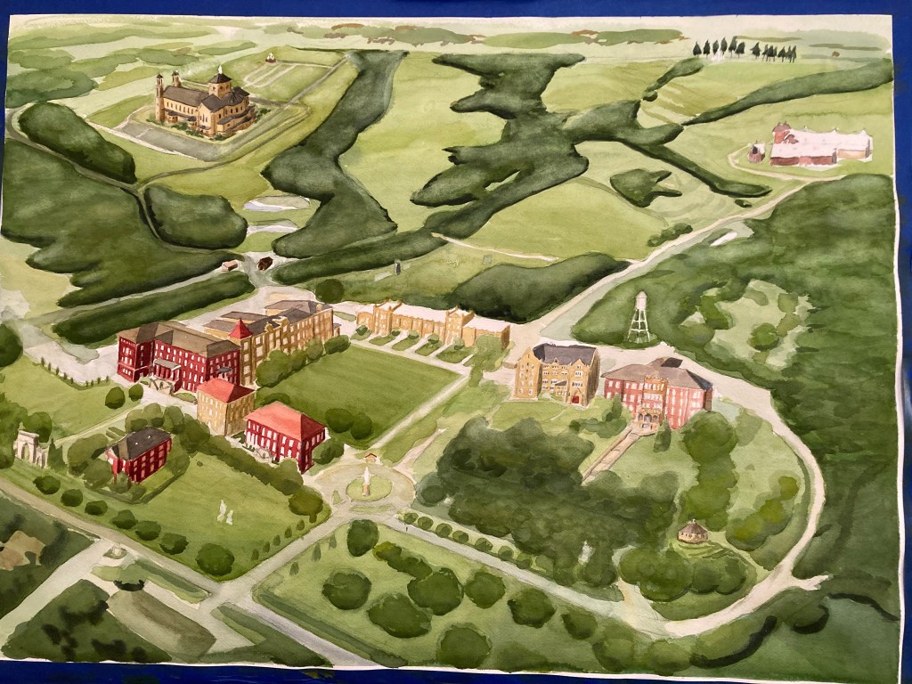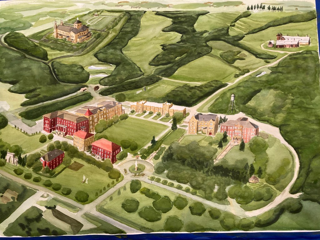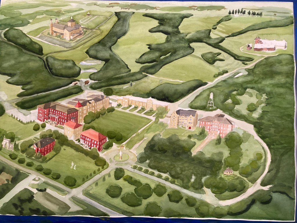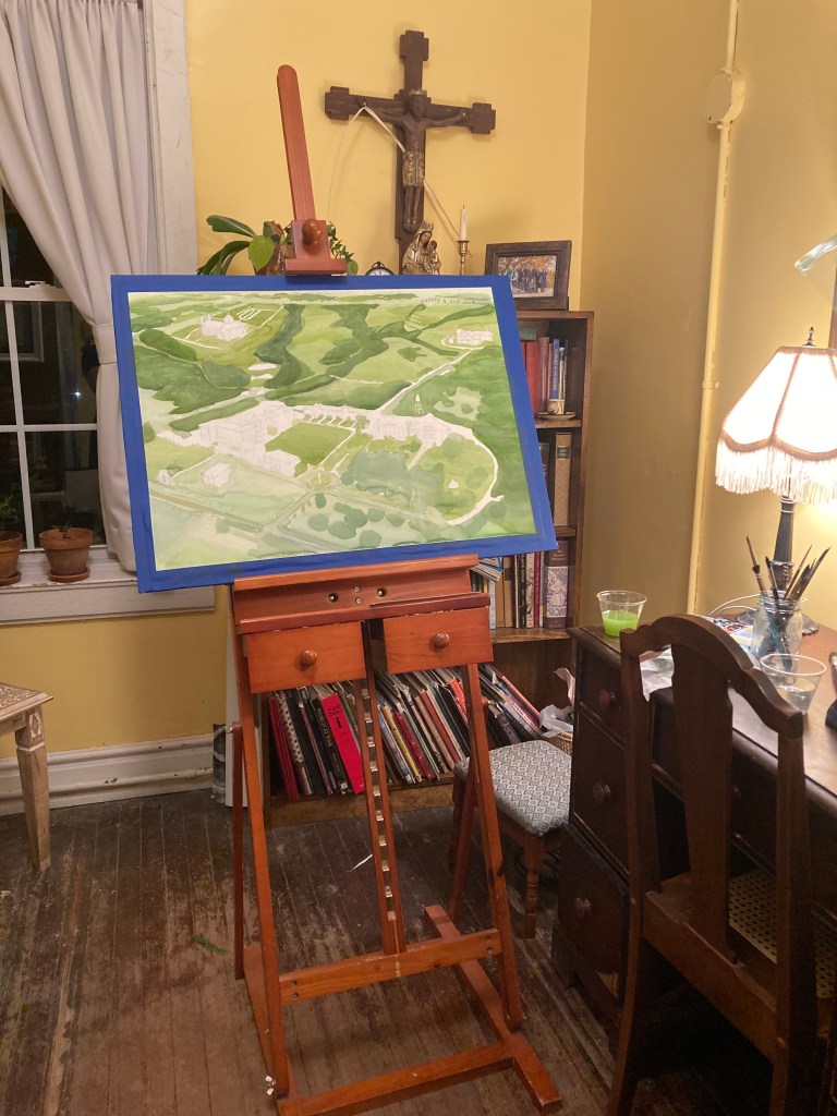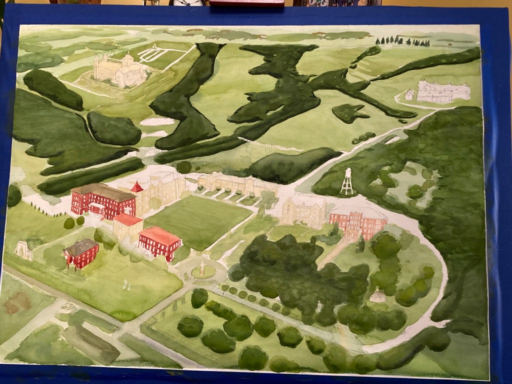 That’s what I was able to do with a current commission. 30 or so hours were poured into the drawing out and painting a map of St. Marys Academy and College.