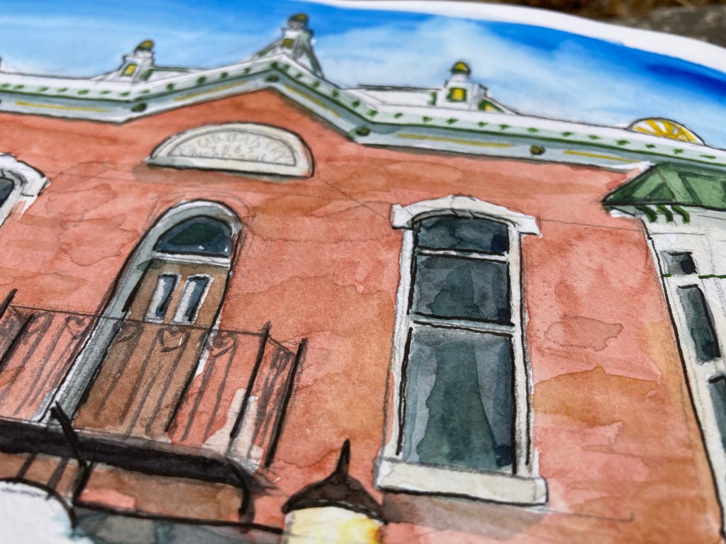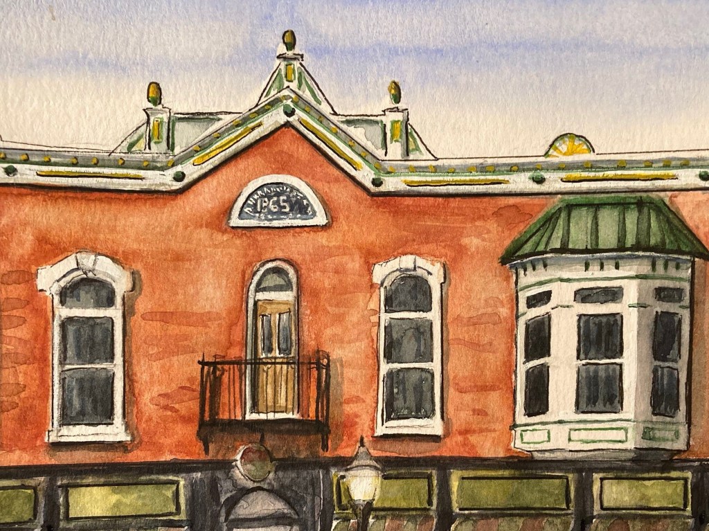 The warm, cheerful spirit of the storekeepers, and the love of beauty of the owner who did the restoring make this building a repeating joy to capture in watercolors.