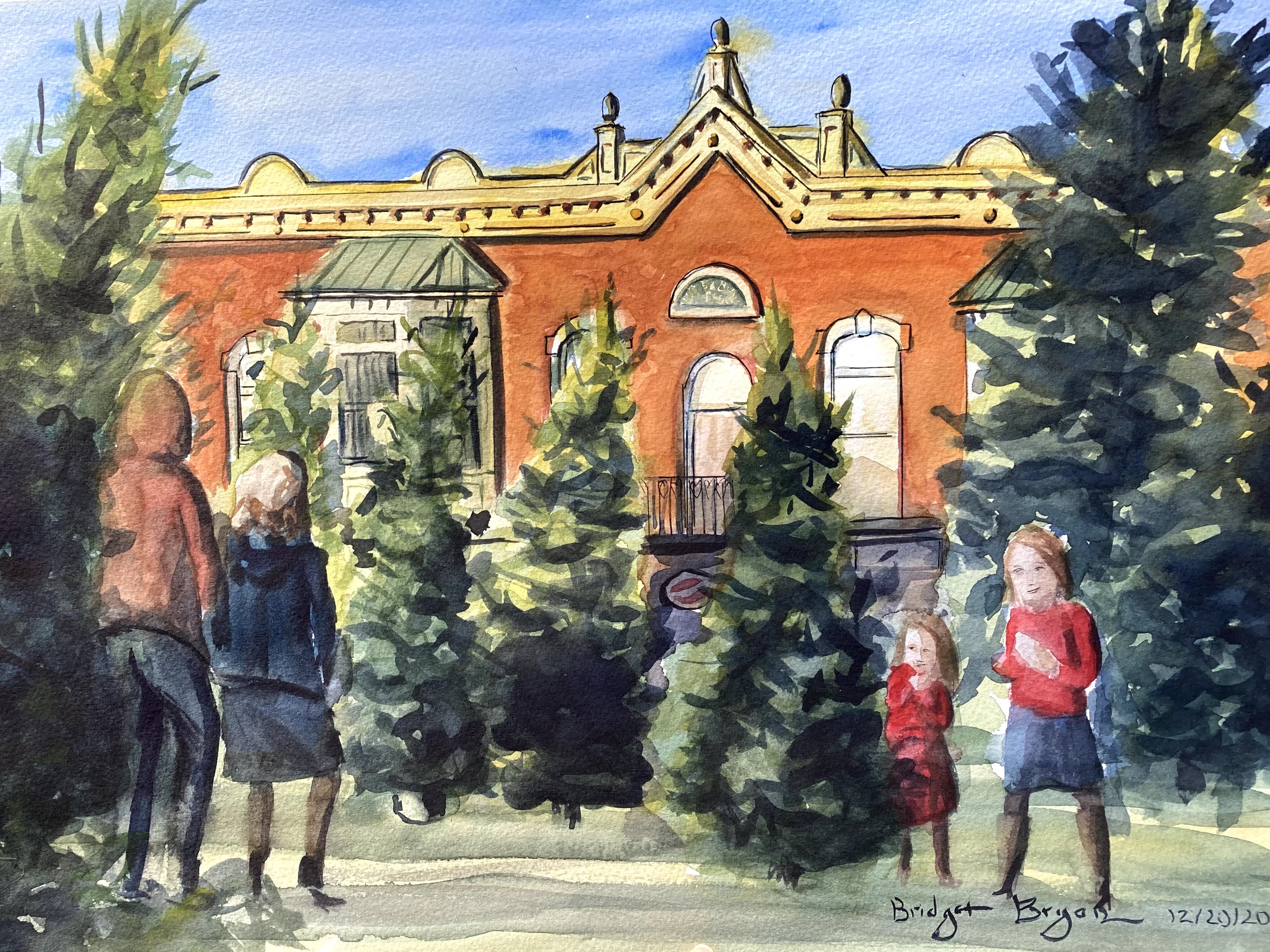 #christmas #watercolors #enpleinair #watercolorpainting #urbansketching #urbanpainting #kansas #midwest #midewestliving #kansasartist #christmastrees #hallmark