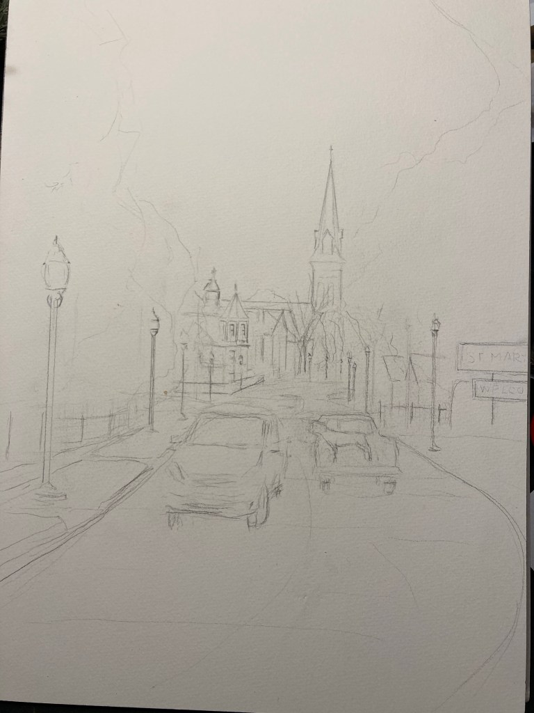 I wanted Dad and Mom to have something that portrayed a scene in our life here in Saint Mary’s. It was to be a sign of my appreciation for their support and encouragement during the last couple months as I began to seriously develop my artistic talents.