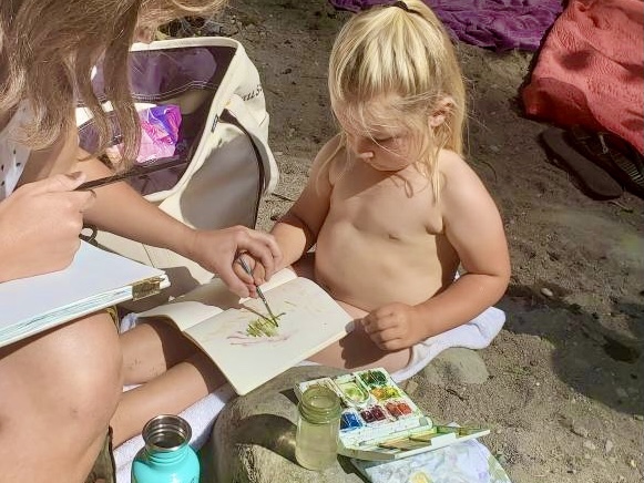 This past summer while I was visiting, the oldest Vancouviette, was old enough to really notice when I would paint and seemed interested in it too. The younger Vancouviette joined us occasionally, but more because she wanted to do what we were doing. (Still, that where it all starts, right?!)