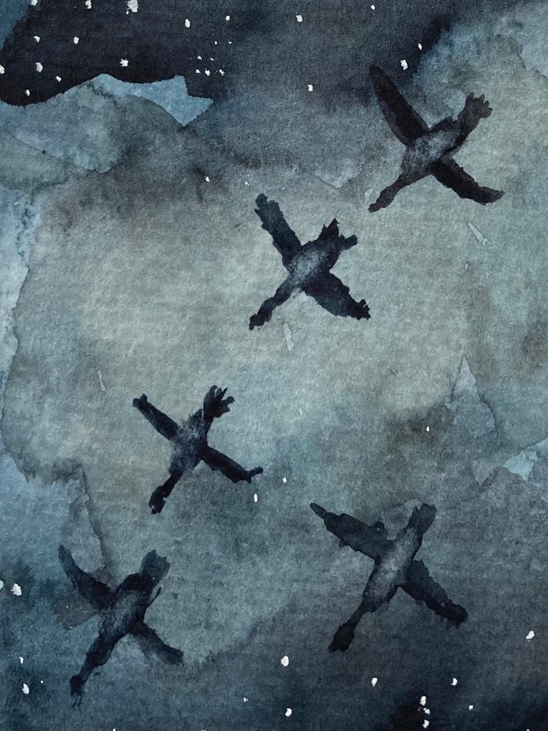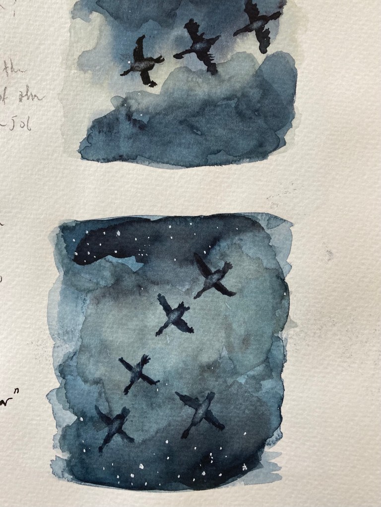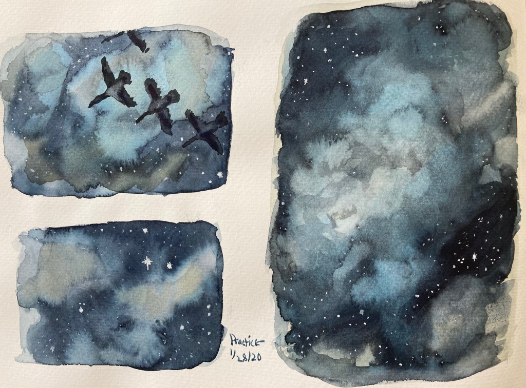 #watercolor #Windsor and Newton #WatercolorJournal #PracticeMakesPerfect #Geese #StarryNights #Fabriano