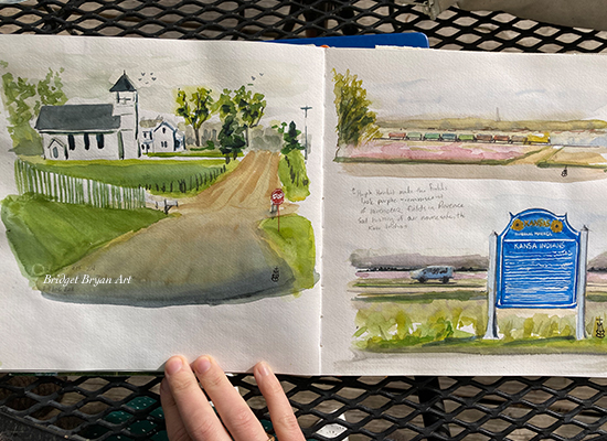 Resisting, yet toying with the idea, I walked my mom and sisters back to their car, and then with no one to worry about keeping waiting, I went back and sketched the scene.