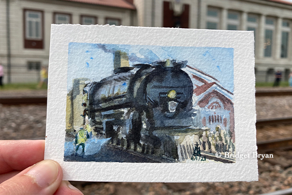 Last month Big Boy came through and I was able to capture a few paintings of him stopping at Topeka’s Great Overland Station. I had hoped to sell a few of the paintings while I was down there, but that didn’t happen, but I was enriched in other ways! My grandma, mom, and sister came with me, and it ended up being a nice time together enjoying the scenery and eating lunch together.