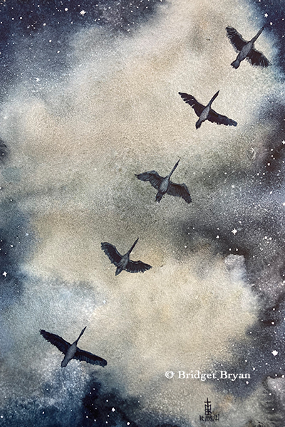 There is something ethereal seeing the three layers in motion above you: the geese flapping just above you, the clouds, and the stars…this perspective shows that the stars are more permanent than we here on earth.