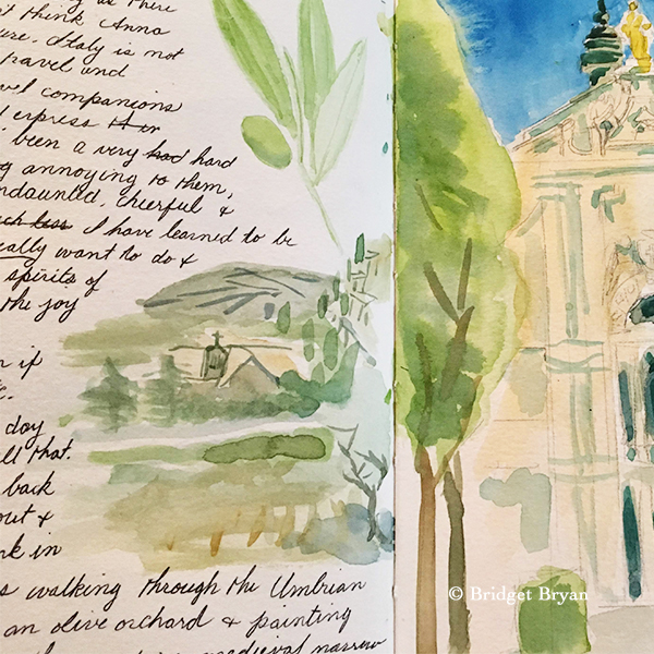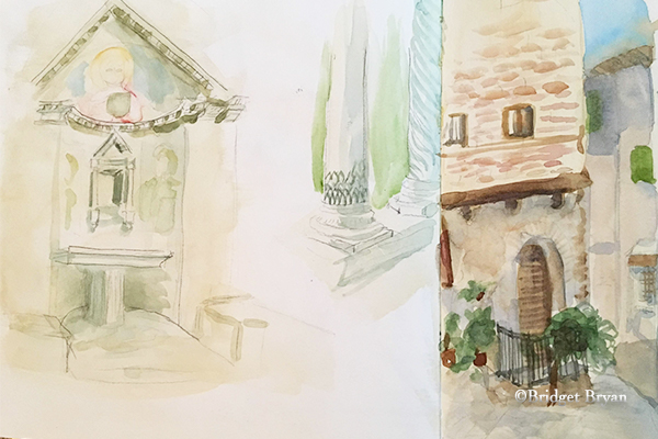 Yes, this was so ideal, sitting here, my watercolor journal out, ready to capture the idealic scene but all I could think about was how things were going with my travel companions. I had told them in a not very cheerful way that I just wanted time alone – I wanted time to do what I was doing. But I couldn’t enjoy it.