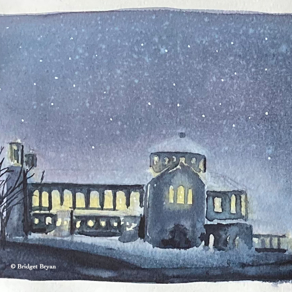 At night, when you go to the cemetery -now a proper ol’ churchyard – the lights inside the Immaculata can be seen shining out. In some ways, she looks better in the darkness. The dark silhouette with shapely light is comforting, shining out, beckoning weary souls to take their rest in her.