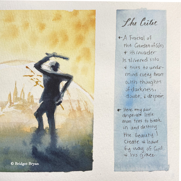 Every time our critic sees the city of God (anything good and true and beautiful) forming within our mind heart and soul, he raises his baton over the invisible globe of glass surrounding it and tries to bash it in.
