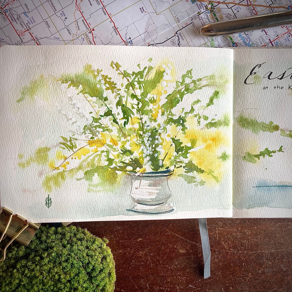 the house and I went foraging the day before for grand bouquets- I couldn’t help painting her masterpiece and capturing her in the kitchen in a peaceful, quiet moment.