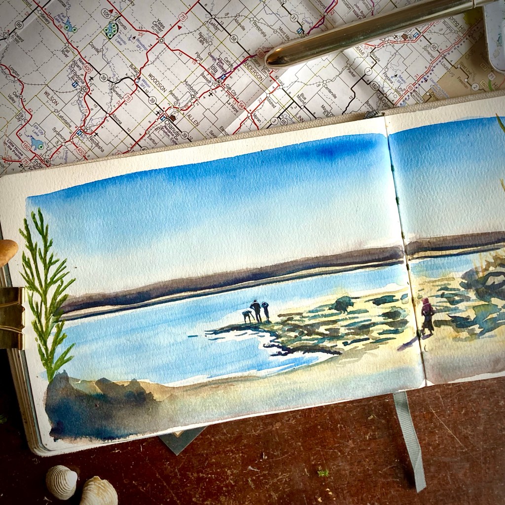 The scene below was painted with water from the lake!