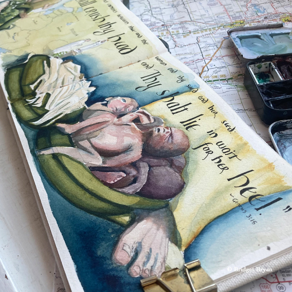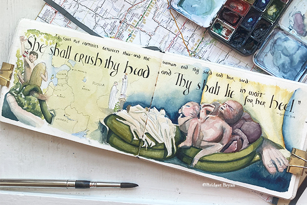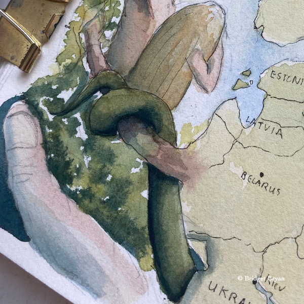 This travelogue painting is my ‘digestion’ of three big events from last March…the only way I could process it was to paint it. And it seemed so terribly important to capture.
